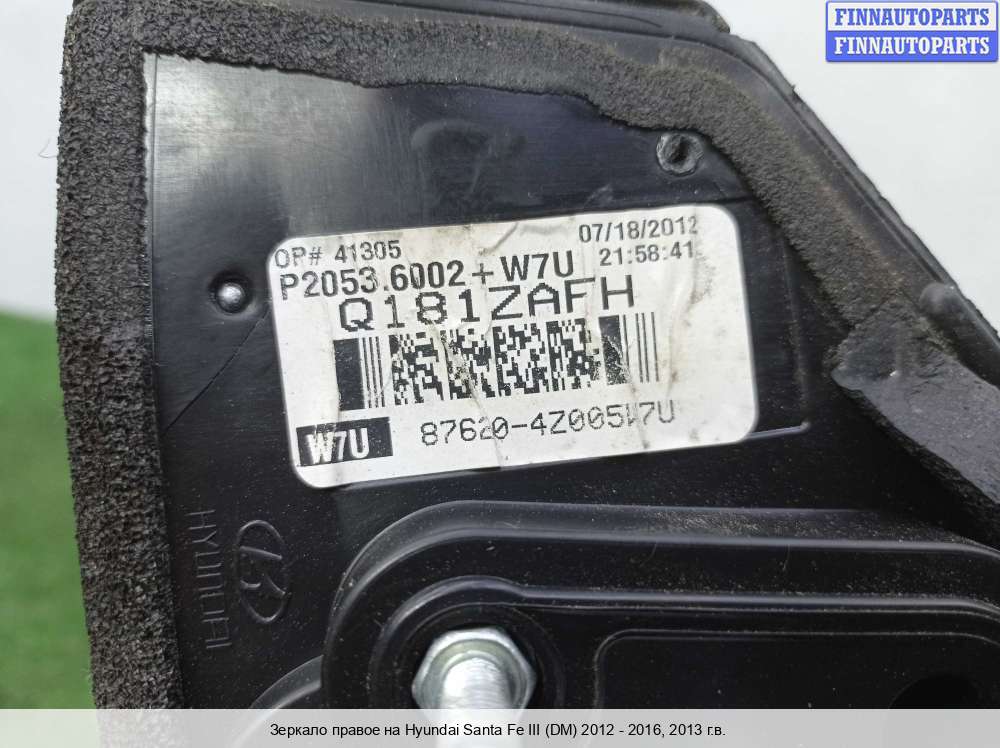 Компания FINNAUTOPARTS занимается продажей контрактных (б/у, бывших в употреблении) запчастей для иномарок. В нашей компании продаются только оригинальные запчасти из Европы, Японии и Кореи, которые не имеют пробега по РФ. Если вы хотите приобрести боковое зеркало (правое) для а/м Хендай Санта Фе 3, смело обращайтесь в нашу компанию. Все наши менеджеры — профессионалы своего дела, и с удовольствием помогут вам купить запчасти, в том числе, боковые зеркала правые, на Hyundai Santa Fe III (DM, NC) и другие автомобили.